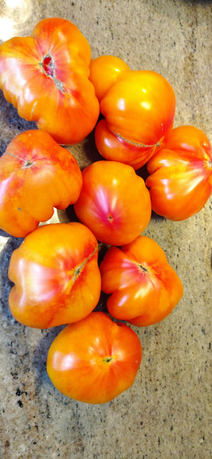 A stunning heirloom beefsteak tomato known for its golden-yellow skin streaked with red and orange. Ananas Tomatoes produces large, aromatic fruits with a meaty texture. Excellent for slicing, salads, and fresh eating.