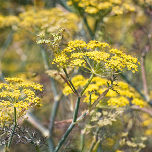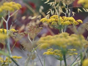 Fennel is a particularly ornamental culinary herb, which works equally as well in ornamental borders as it does in herb and vegetable gardens. Fennel has very finely divided foliage and attractive, plate-like yellow flowers followed by aromatic seeds. The flowers are attractive to insects, especially hoverflies, and the seeds are eaten by birds.