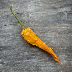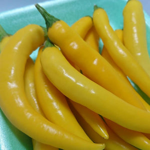 Yellow version of the well known cayenne pepper. Their thin walls make them ideal for drying but they are also great to use fresh. Plants grow to about 60cm tall and are unfussy. They produce an abundance of fruits. Take care when sowing as the capsaicinoid chemicals which give chillies their heat is abundant on the seeds.