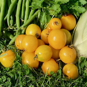 A mild, sweet medium-sized round tomato ripening to a deep golden/amber colour.